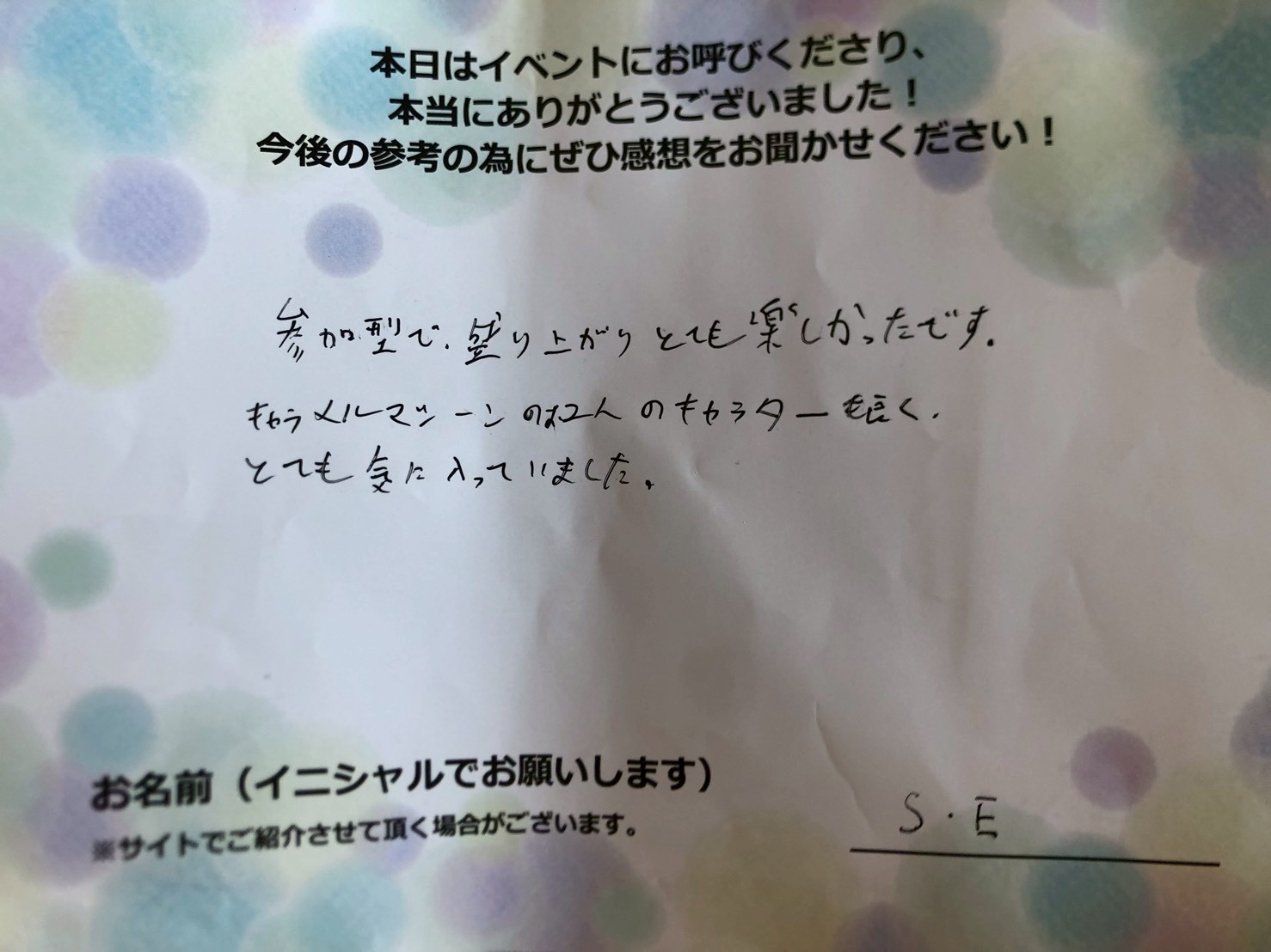 お客様の声参加型で.盛り上がりとても楽しかったです.
