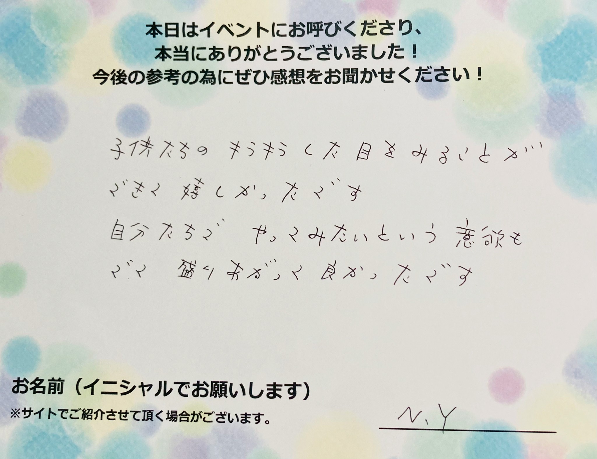 子供たちのキラキラした目をみることが できく嬉しかったです