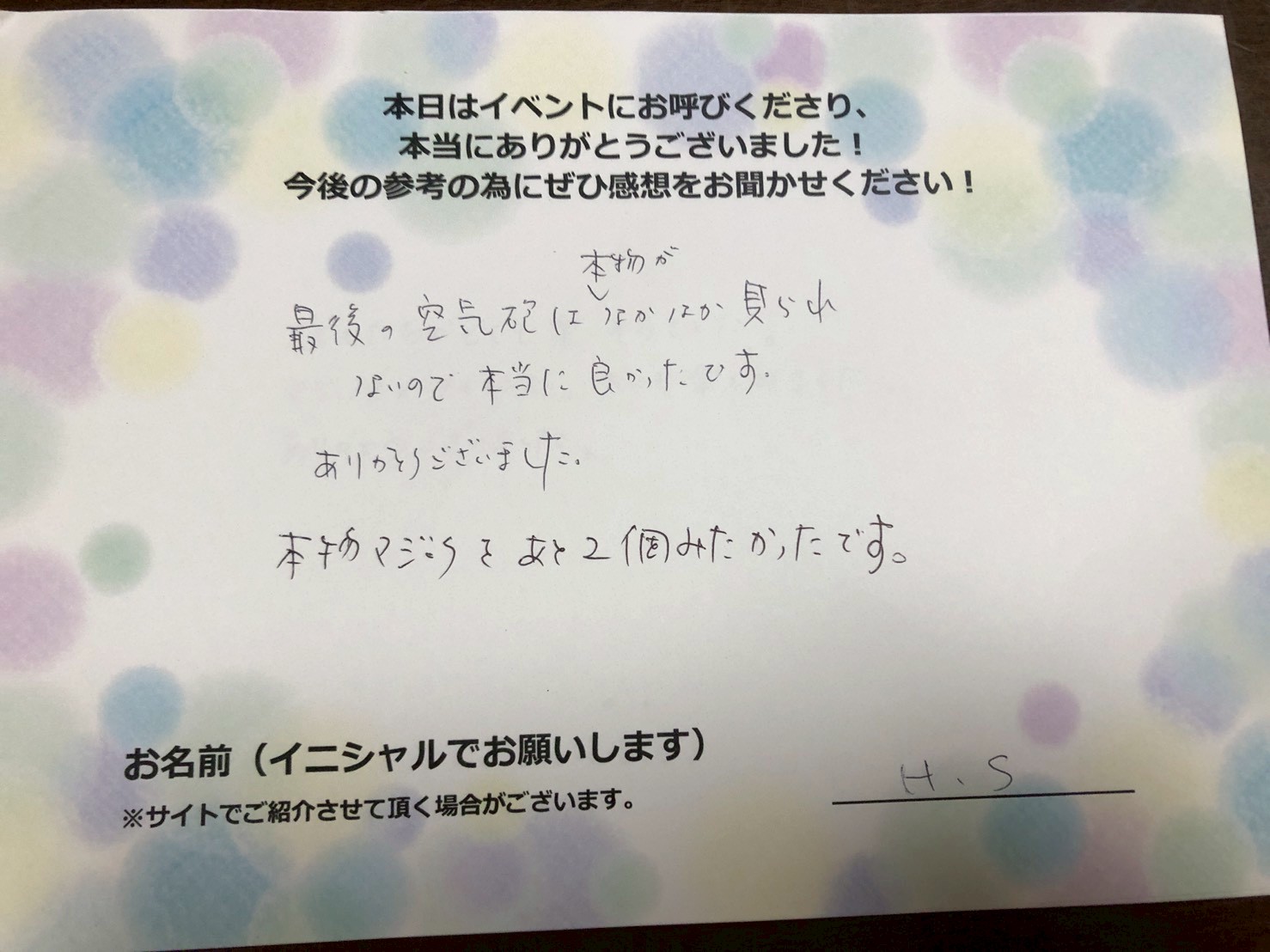 本物マジックをあと2個みたかったです。