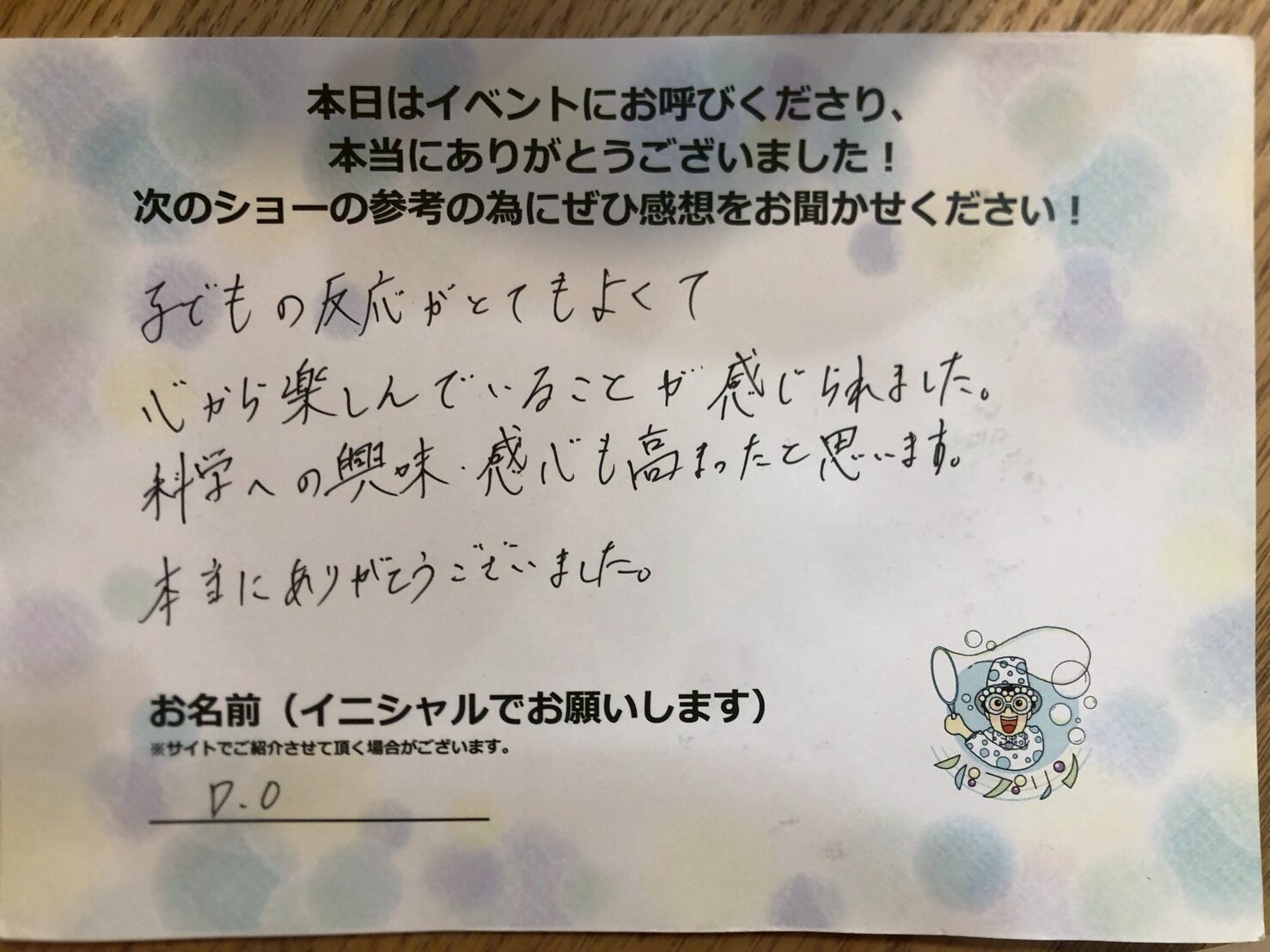 お客様の声子どもの反応がとてもよくて