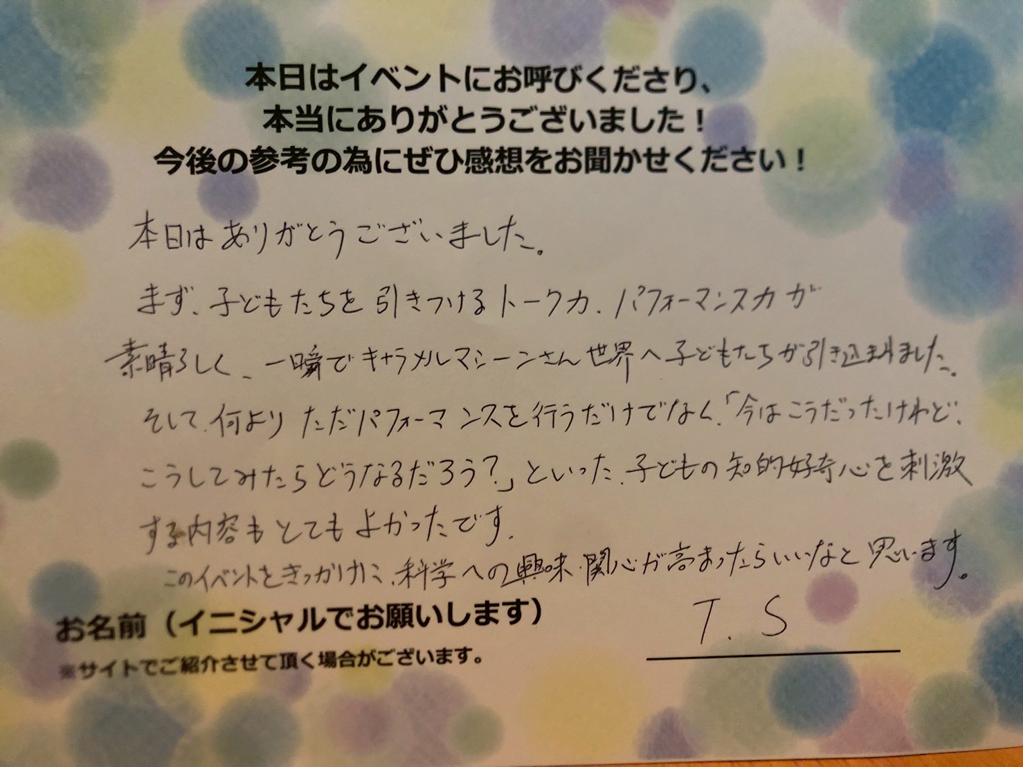 このイベントときっかけに、科学への興味、関心が高まったらいいなと思います。