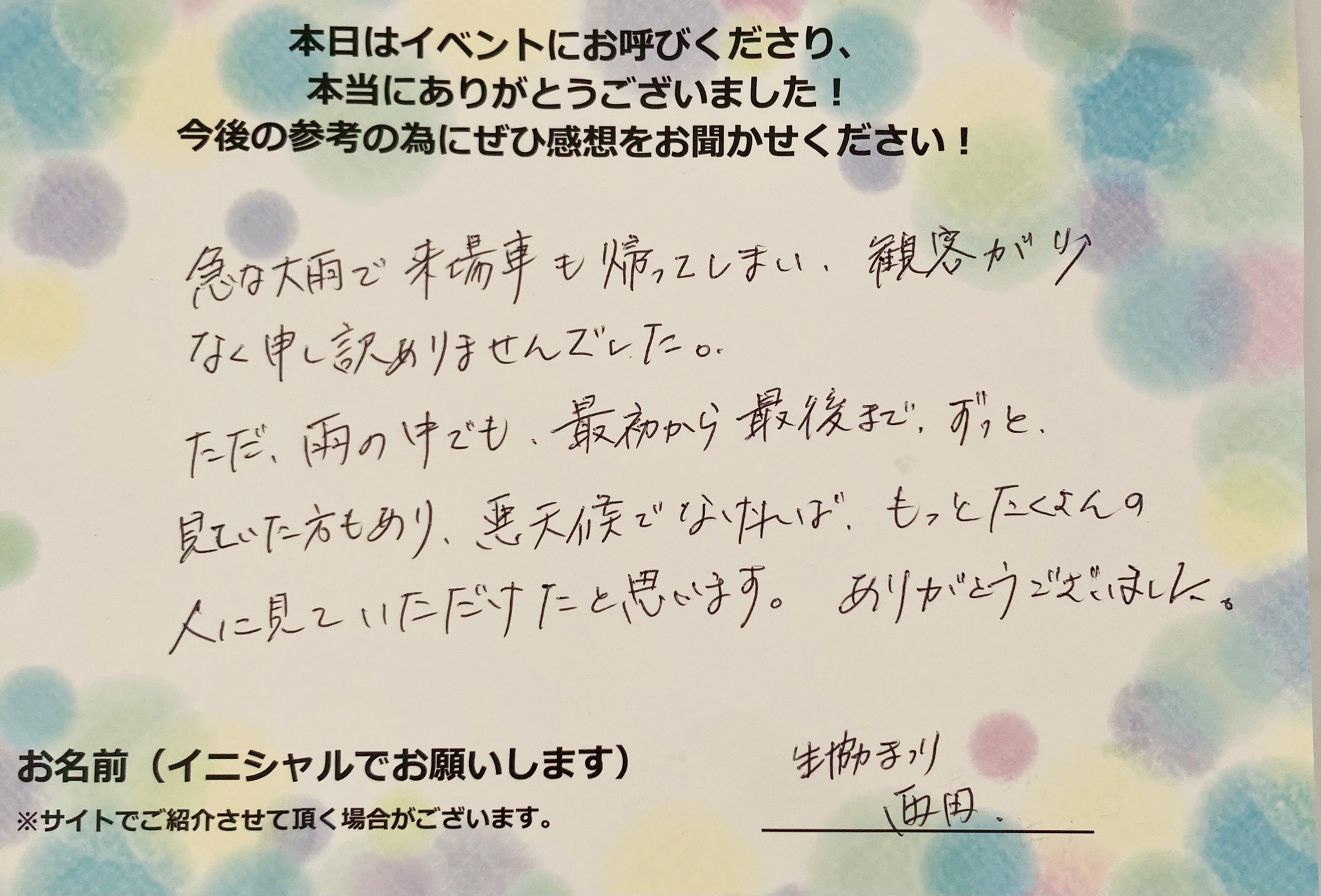 お客様の声急は大雨で来事も帰ってしまい、観客が少