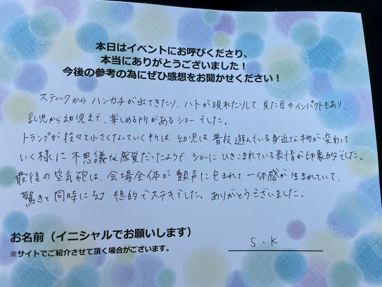 いく様に不思議な感覚だったようで.ショーに ひきこまれている表情が印象的でした。