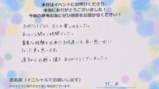 参加者の皆様、とても喜んでいただきました。また、機会がありましたら、ぜひよろしくお願いいたします。