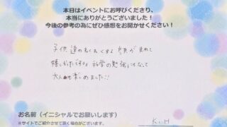 素敵なマジックサイエンスシューをありがとうございました。マジックや化学の不思議に子どもたちも「どうして?!」と目をキラキラさせて見ていました。 中には「きっと?だからだよ!」と自分の考えを教えてくれる子もいました。 子どもたちの考えを聞いて...