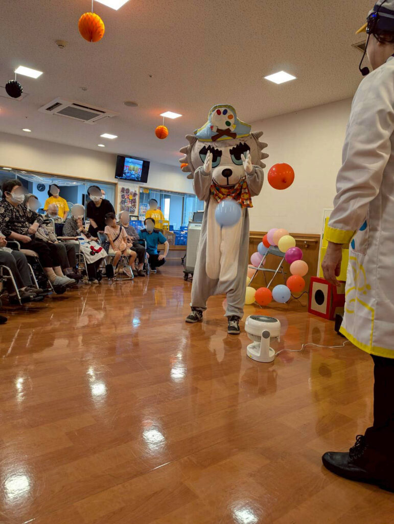 ショーのあと施設の皆さんや職員の方にも空気砲を体験して貰いました。